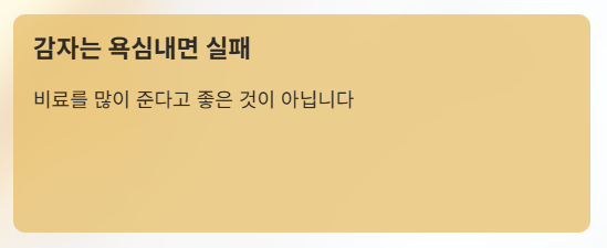 => 감자는 욕심내서 비료 많이 주면 오히려 실패하는 작물