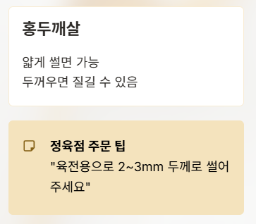 - 홍두깨살: 얇게 썰면 가능하지만 과하면 질겨질 수 있음