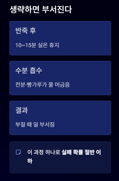 사진 없이도 이 원칙만 지키면 모양·식감·맛 모두 안정적이다.