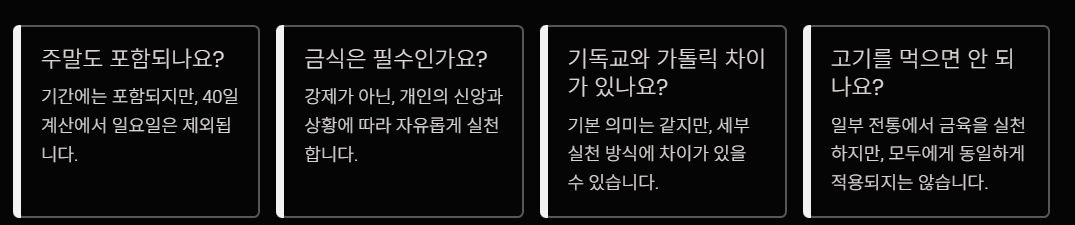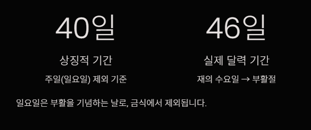 - 기간: 약 40일(주일 제외 기준)