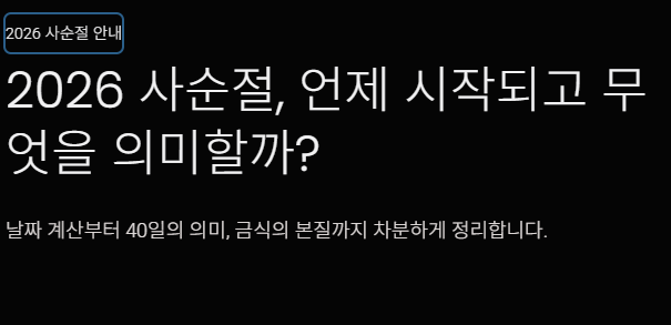 이번 글에서는 2026년 사순절 시작일과 기간, 사순절이 40일인 이유, 금식의 의미까지 차분하게 정리해 드리겠습니다.