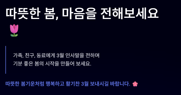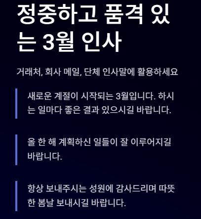 가장 일반적으로 사용할 수 있는 3월 인사말입니다.