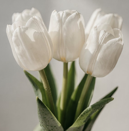 흰 튤립은 깨끗한 이미지 때문에 새로운 출발이나 응원의 의미로도 자주 사용됩니다.