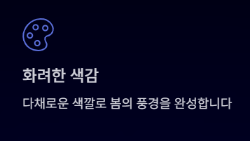 - 다양한 색깔로 화려한 분위기를 만들 수 있음