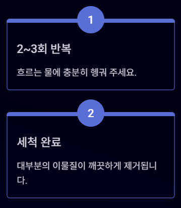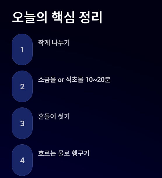 - 흐르는 물로 깨끗하게 헹구기