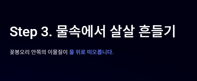 그러면 꽃봉오리 안쪽에 있던 작은 이물질들이 물 위로 떠오르게 됩니다.