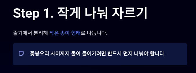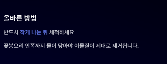 이렇게 해야 꽃봉오리 사이까지 물이 들어가 세척이 잘 됩니다.