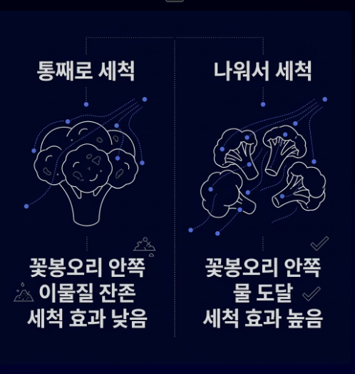 브로콜리는 건강에 좋은 채소이지만 구조상 이물질이 숨어 있기 쉬워 올바른 세척 과정이 매우 중요합니다.