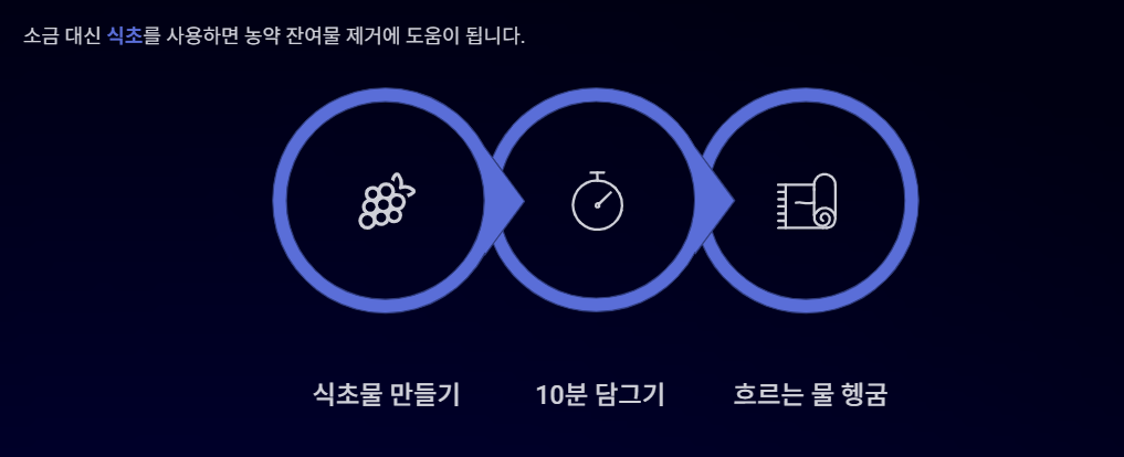 식초는 농약 잔여물을 줄이는 데 도움이 될 수 있어 많은 가정에서 사용하는 방법입니다.