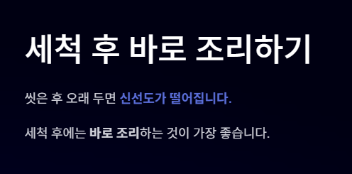 가능하면 세척 후 바로 조리하는 것이 좋습니다.