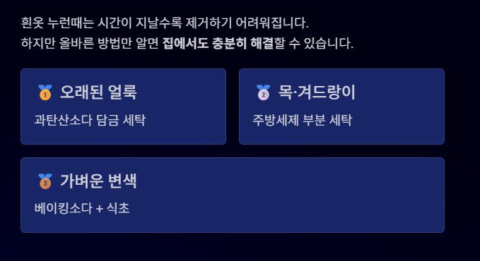 흰옷 누런때 제거 방법을 쉽고 확실하게 정리해드리겠습니다.