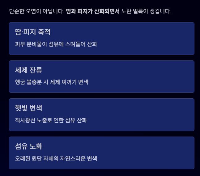 땀과 피지가 산화되면서 노란 얼룩이 생긴다