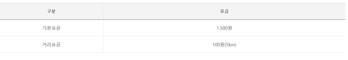 기본요금은 일반 택시의 약 30~40% 수준이며, 거리에 따라 추가 요금이 발생합니다.