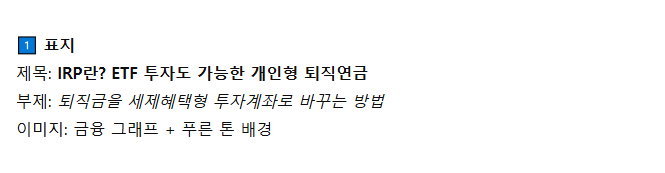 IRP는 장기계좌이므로, 주식형 + 채권형 ETF를 혼합 구성하는 것이 안정적입니다.