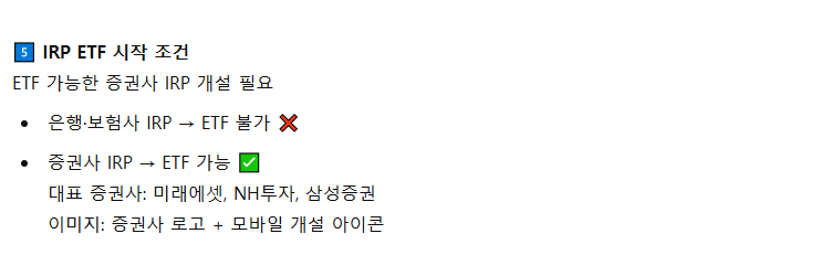 → 은행이나 보험사 IRP는 대부분 ETF 불가입니다.