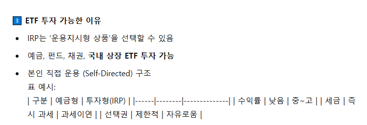 - IRP는 ‘ETF 투자 가능한 세제혜택형 계좌’