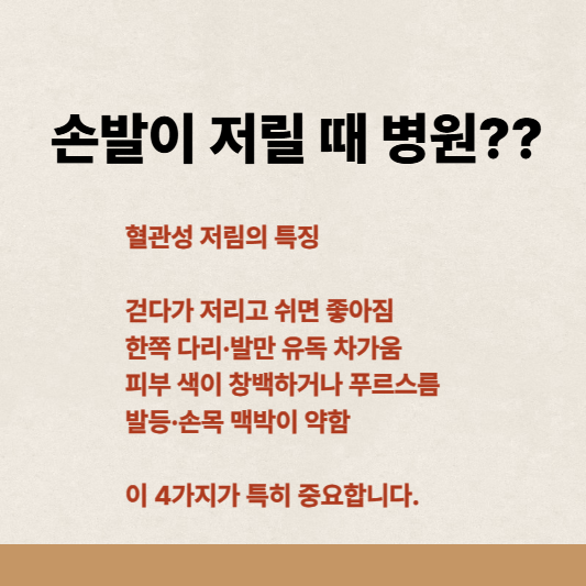 혈관이 막히거나 좁아지면 혈류가 떨어져 저림 + 차가움이 함께 나타납니다.