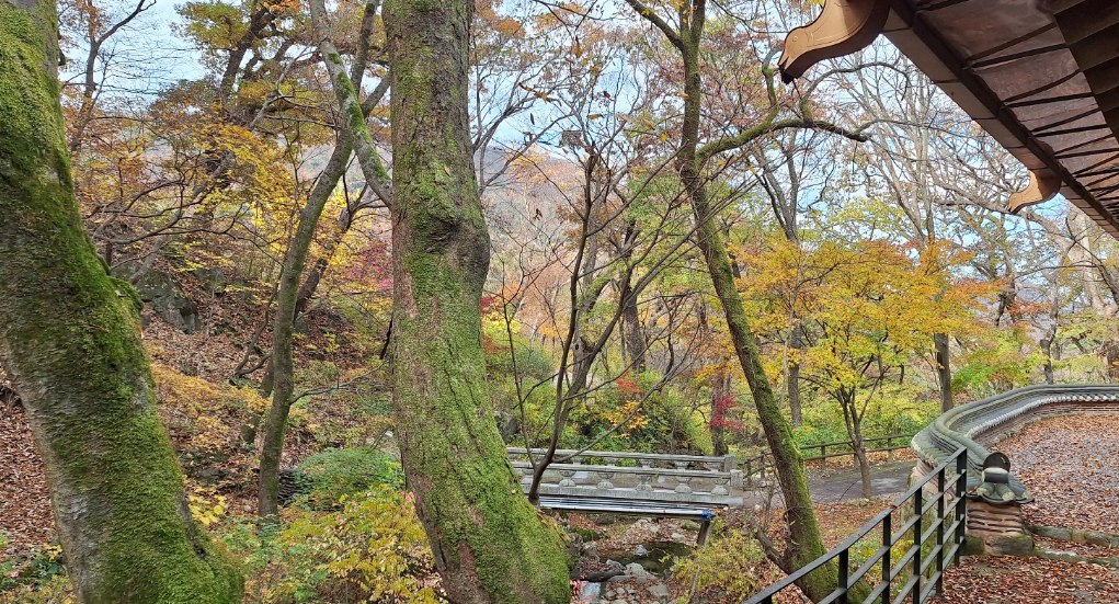 11월 초~중순이 가장 아름답고, 사찰로 이어지는 길은 완만한 경사와 넓은 흙길이 특징입니다.