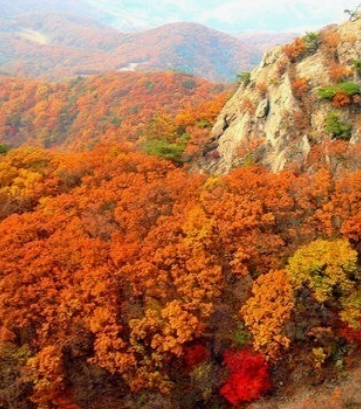 - 능선과 단풍이 함께 보이는 시원한 풍경