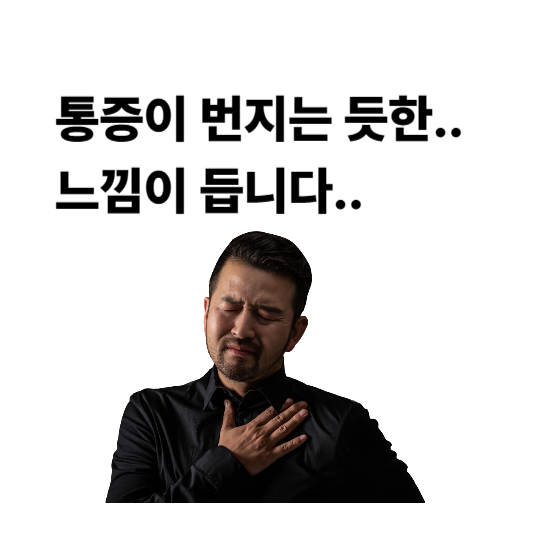 - 통증이 왼쪽 팔·어깨·등·턱으로 번진다