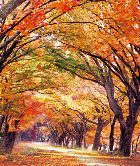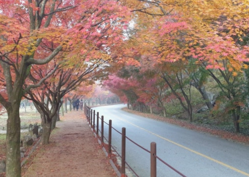 - 가로수 양쪽이 붉은·노란색으로 물드는 단풍 명소