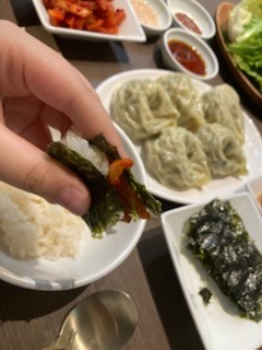 거기다가 칼국수를 시키면 먼저 찰밥과 김, 그리고 김치를 준답니다. 김에 싸서 김치랑 먹으니 꿀맛이었어요! 만두와 수육도 ... 수육은 입에서 살살 녹았습니다. 야채도 신선하고, 수육을 쌈장에 찍어서 먹었는데, 그야말로 최고의 조합! 맛있더라구요.