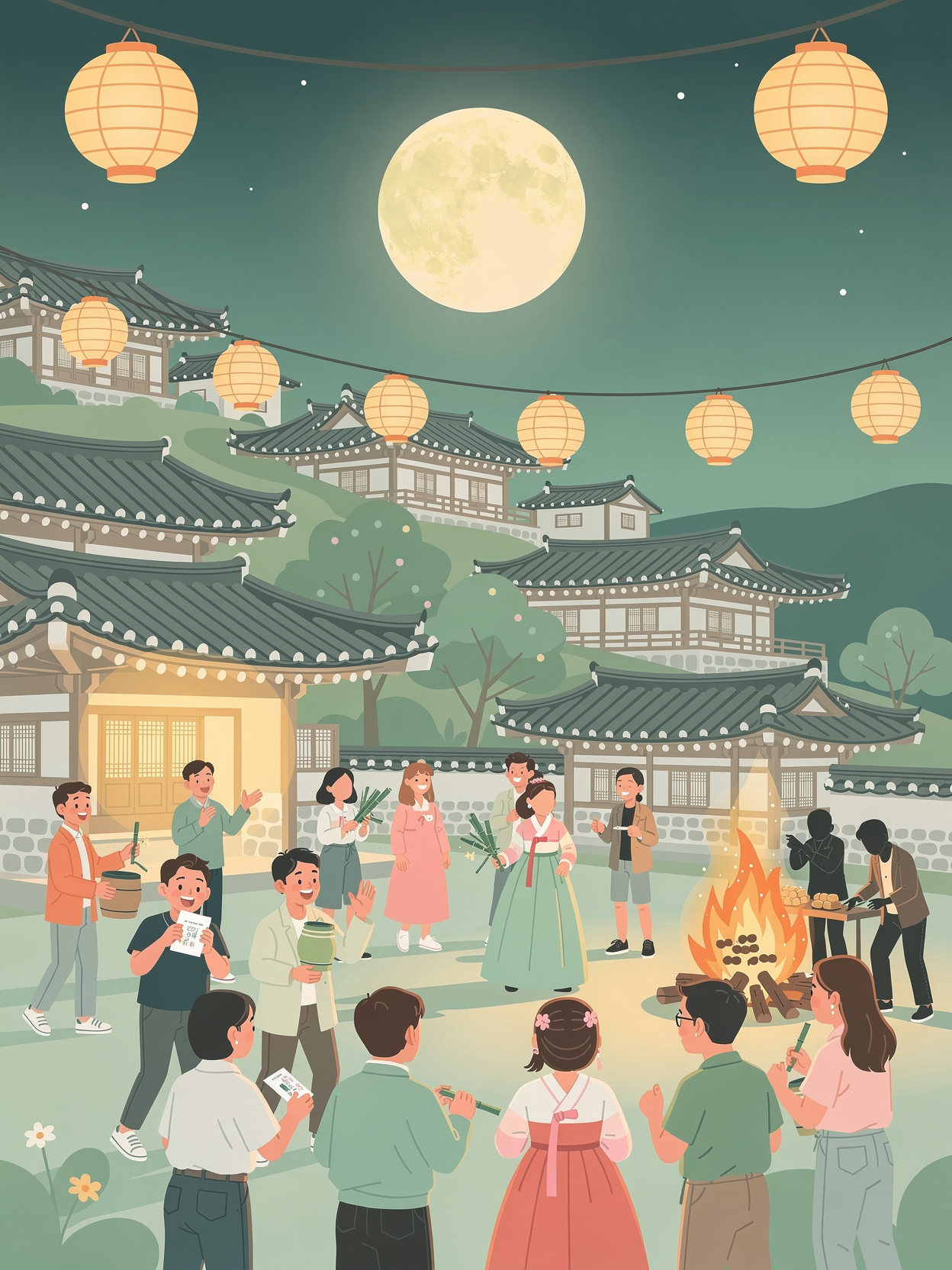 이 외에도, 그날은 집안 청소 후 가족과 함께 달을 바라보며 소망 빌기 등 소소하지만 의미 있는 전통 행동을 추가하면 좋습니다.