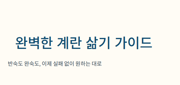 - 초보자라면 찬물 + 계란 + 함께 가열 방식이 안정적