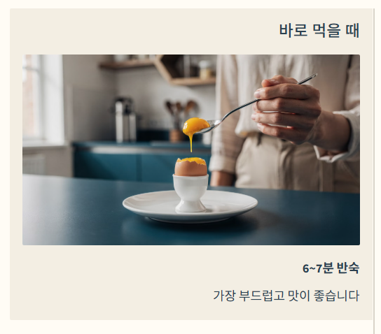 → 6~7분 반숙이 가장 부드럽고 맛이 좋음