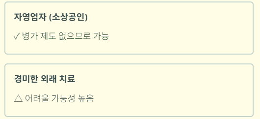 ✓ 자영업자(소상공인) → 병가 제도 없으므로 가능