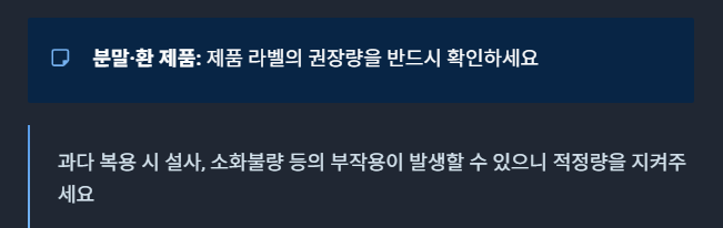 - 분말·환 제품: 제품 라벨 권장량 준수