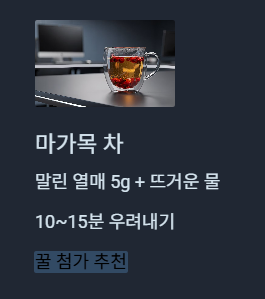 - 방법: 컵에 열매를 넣고 뜨거운 물을 부어 10~15분 우려낸 후 마십니다.