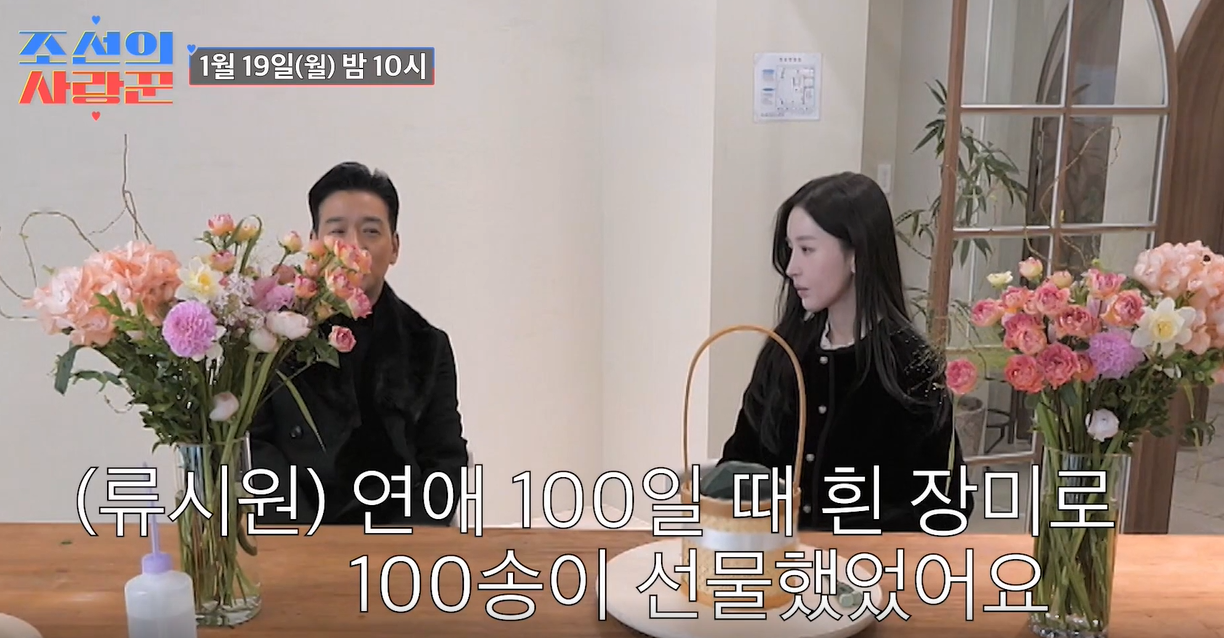이아영 씨는 “류시원이 꽃과 손편지까지 선물했어요”라고 말했는데, 류시원은 “아내가 청순하고 깨끗한 이미지라 빨간 장미보다는 흰 장미 100송이를 선물했다”고 하더라고요.
