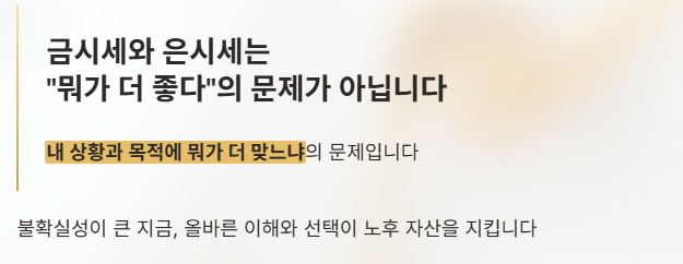 ✔ 한눈에 보는 금 vs 은 선택 기준
