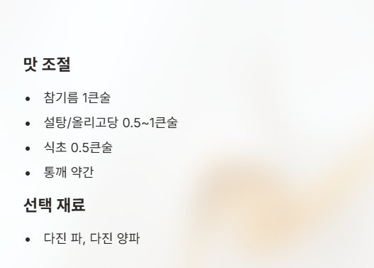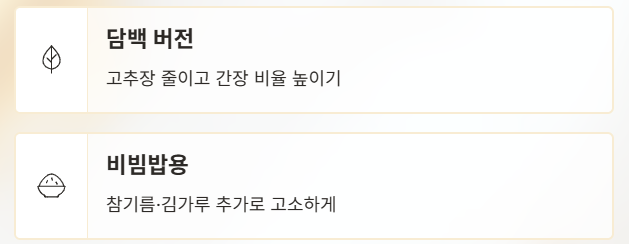 - 담백 버전: 고추장 줄이고 간장 비율↑