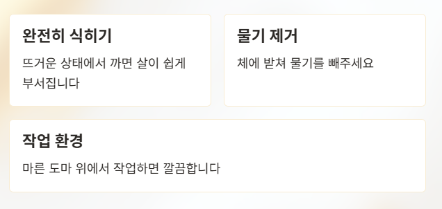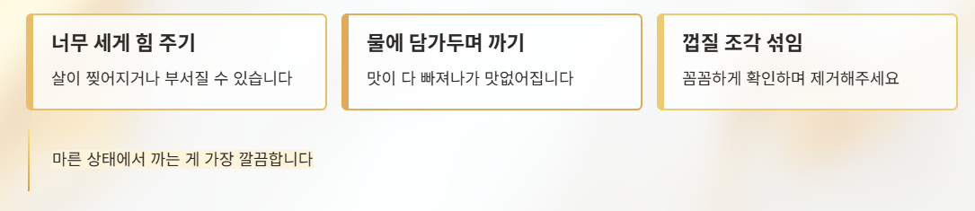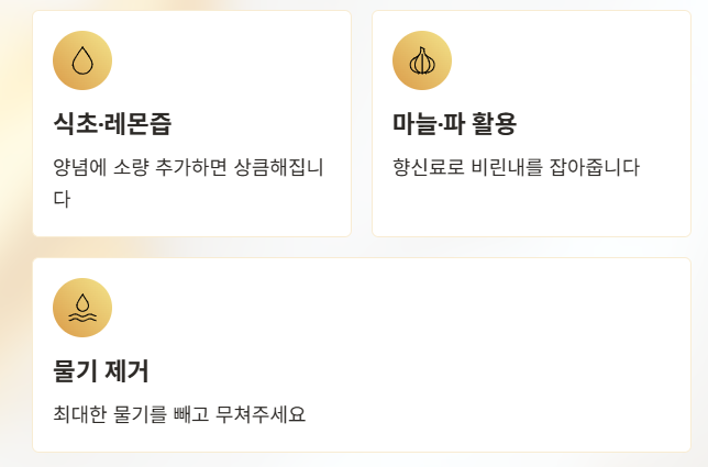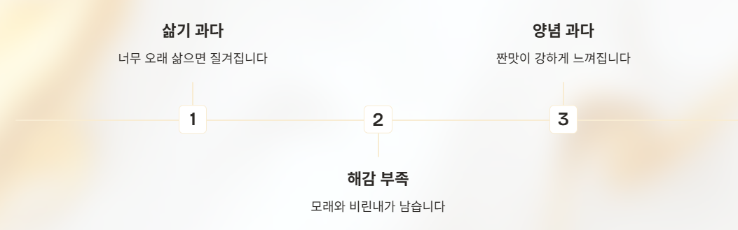 =>삶기 → 손질 → 양념 순서만 지켜도 실패 확률 감소