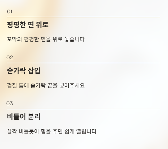 - 둥근 쪽이 아닌 뾰족한 쪽부터 열기