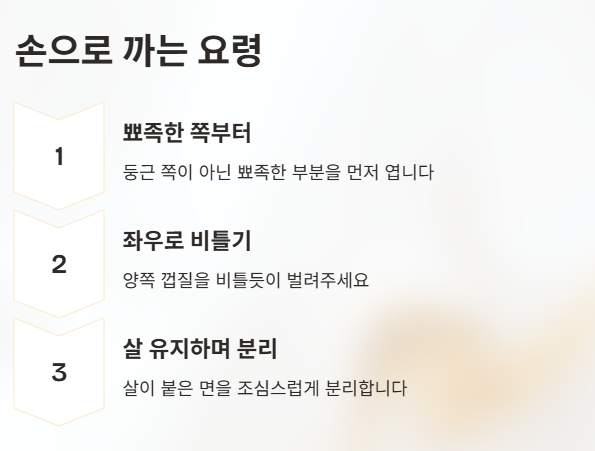 - 양쪽 껍질을 좌우로 비틀듯이 벌리기