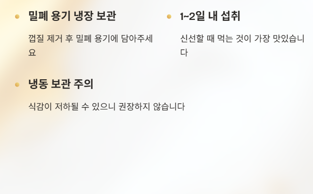 - 껍질 제거 후 밀폐 용기 냉장 보관