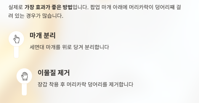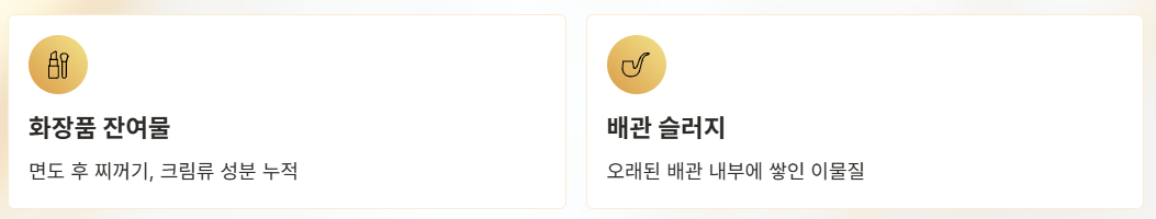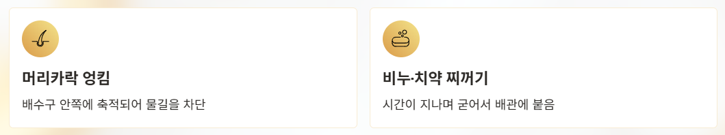 머리카락, 비누 찌꺼기, 치약 잔여물 등이 배수구 안쪽에 쌓이면서