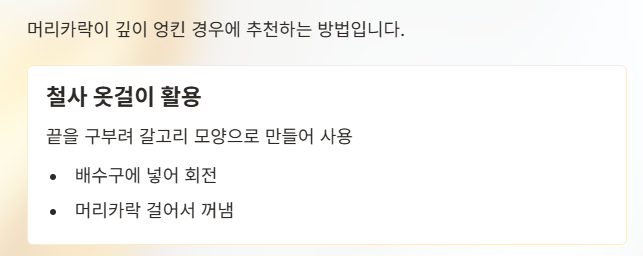 - 머리카락이 심하게 엉킨 경우 효과 제한적