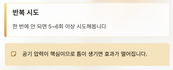 ※ 공기 압력이 핵심이라 틈이 생기면 효과가 떨어진다.
