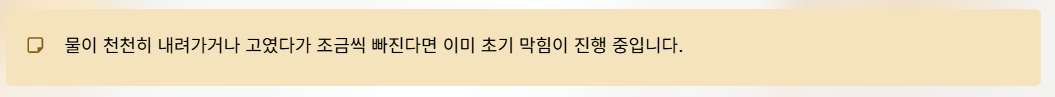 => 물이 고였다가 조금씩 빠지면 이미 초기 막힘이 진행 중인 상태다.