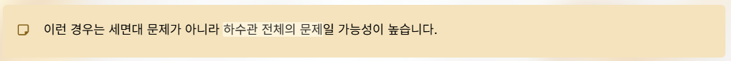 이 경우는 세면대 문제가 아니라 하수관 전체 문제일 가능성도 있다.