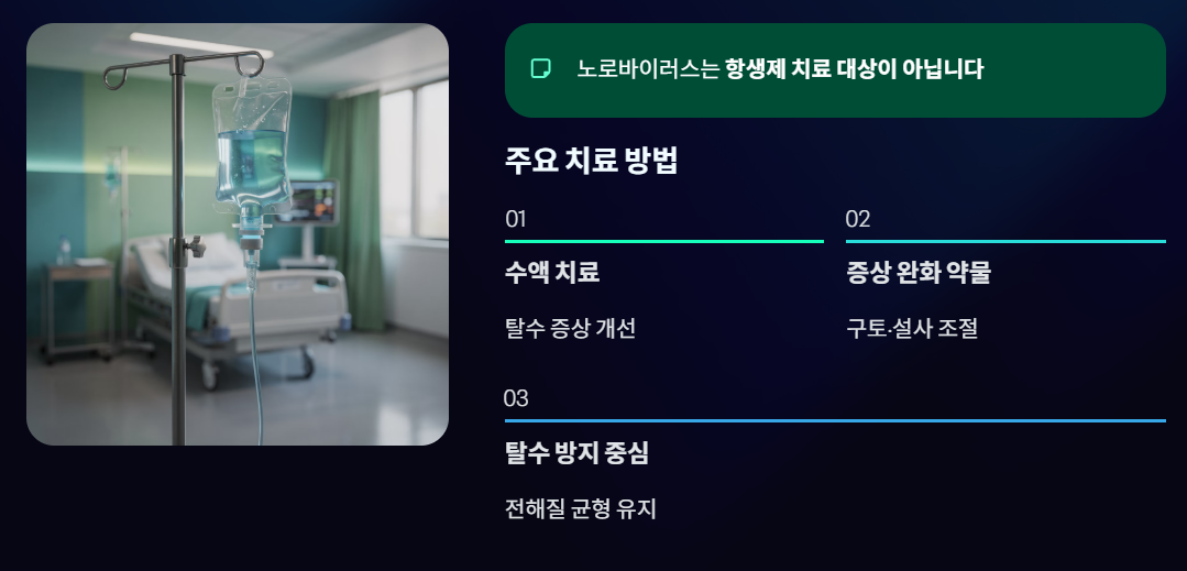 => 노로바이러스는 항생제 치료 대상이 아닙니다.