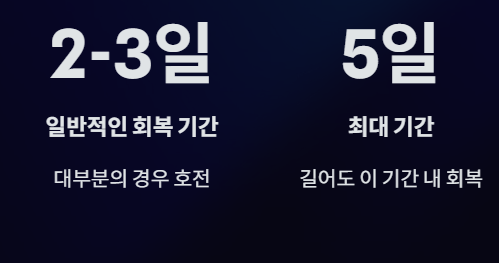 - 길어도 5일 이내 회복하는 경우가 대부분