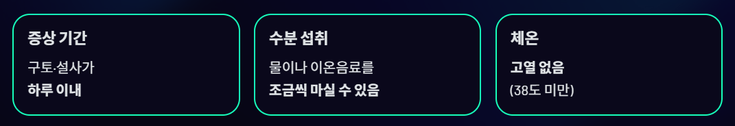 => 이 경우 핵심은 억지로 먹지 말고, 수분 보충 + 충분한 휴식