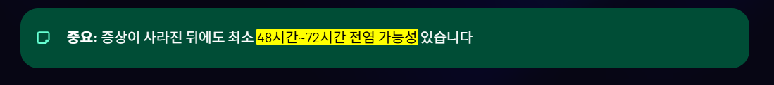 최소 48시간~72시간 전염 가능성이 있습니다.