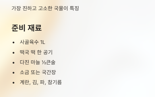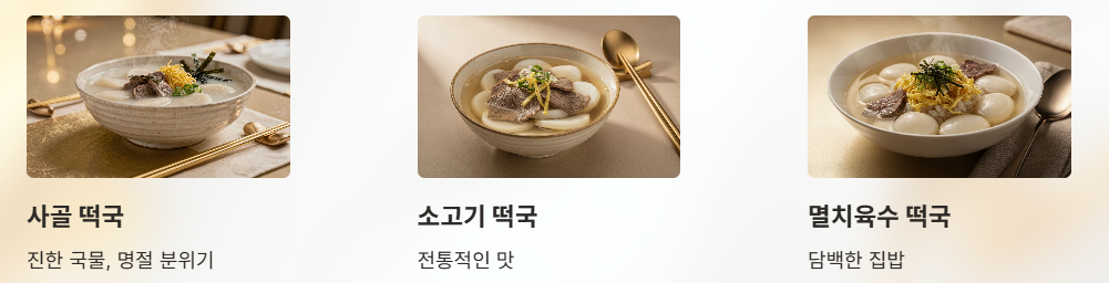 - 진한 국물, 명절 분위기 → 사골 떡국