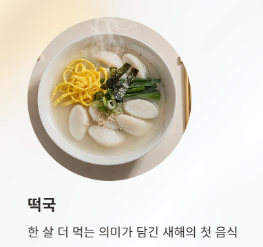 - 전통적인 맛 → 소고기 떡국